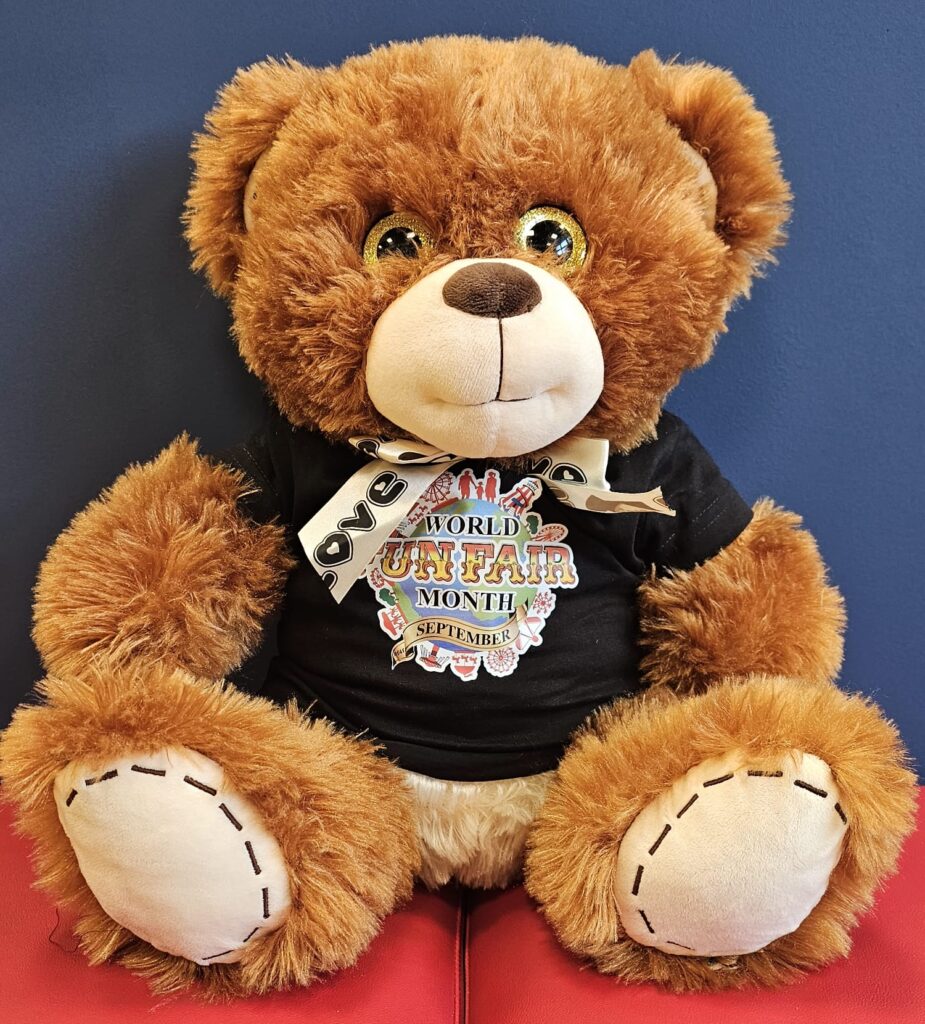 Meet Fair Bear from Future 4 Fairgrounds – she is staying with us at the Philip Astley Centre for September – World Funfair month, but she hasn’t got a name yet.